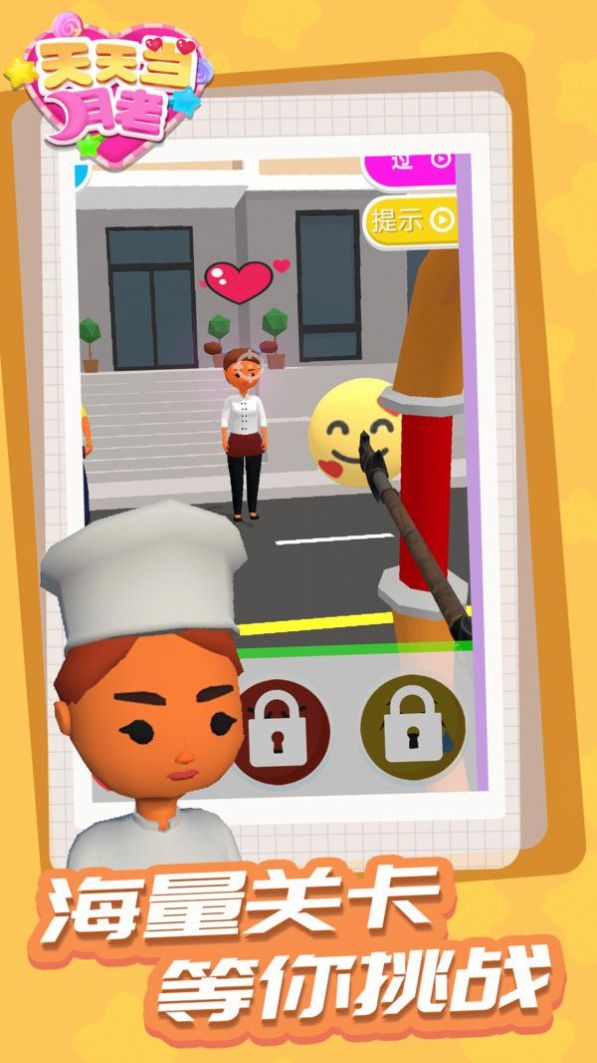 天天当月老是一款恋爱解谜闯关类游戏,在游戏中体验成为月老的乐趣,这里有很多单身男女等你撮合,不断尝试新的解谜方式,你可以使用各种道具来改变人们的心情,让他们能顺利成为情侣,还有很多恋爱故事可以体验,提升自己的技术,去完成更多的恋爱挑战,让所有人都能找到对象。