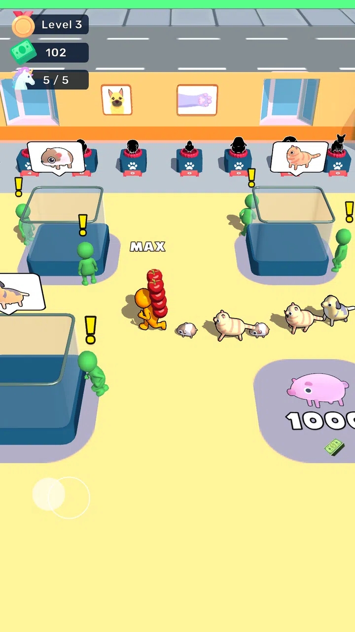 我自己的宠物店游戏是一款宠物店经营模拟游戏。我们需要去捕捉各种各样的宠物,然后将这些宠物放置在店铺中的合适位置,每一次我们在野外可以捕捉的宠物数量是有限的,我们需要不断升级自己的背包,这样能够提升宠物的容纳数量,提高我们的捕捉效率,也能够满足更多客人的宠物购买需求!