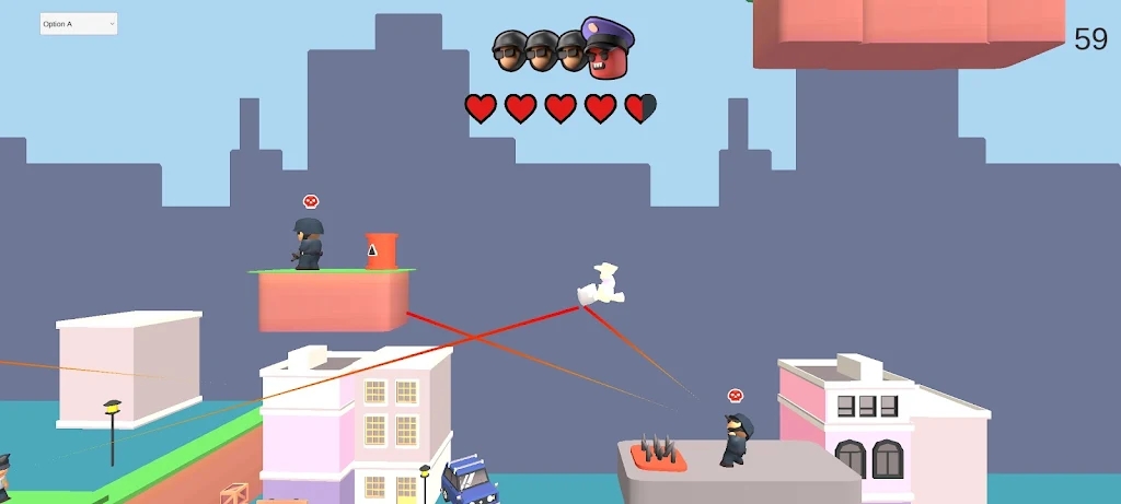 1、在各个不同的游戏的任务中,我们需要在蹦床上跳跃时用枪射击目标。