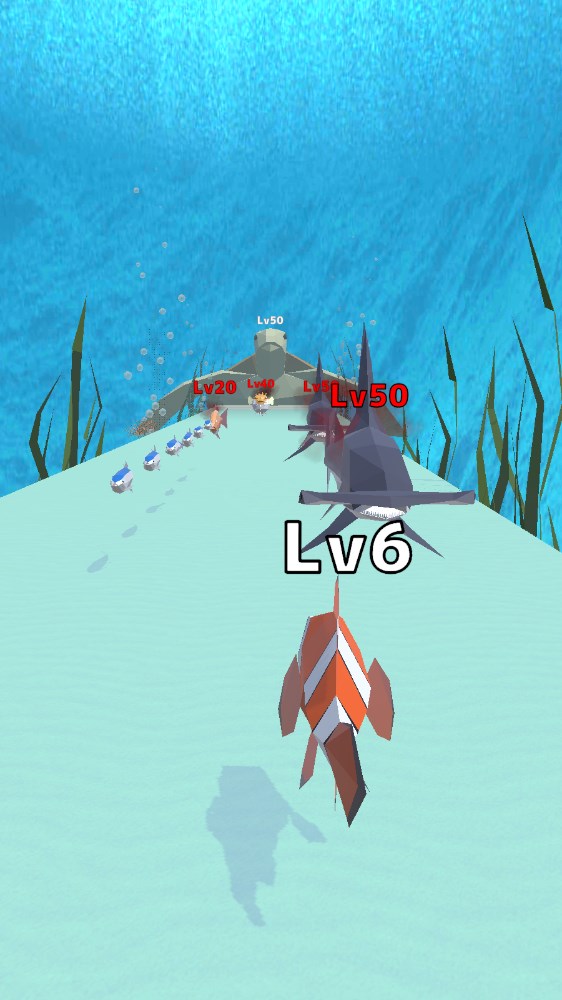 像鱼一样在海里自由游动,欣赏海底的美景,同时也要躲避等级高的吓人鱼,吃掉等级低的小鱼,逐步长成大鱼,以成为最强的海王为目标,海量关卡,不断挑战,体验欢乐的玩法。