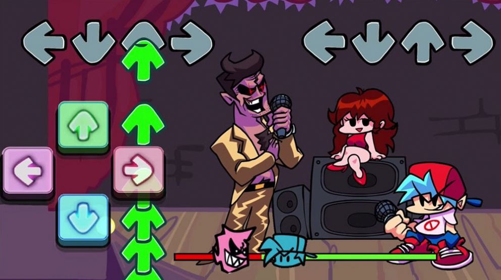 2、不容易被敌人随意击倒,消灭所有的音符击败对手,让你的分数比对方更高,就能击败对手通关。