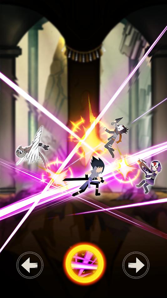 玩家在游戏中操控一个火柴人,利用简单的横版摇杆操作操控火柴人进行热血格斗;