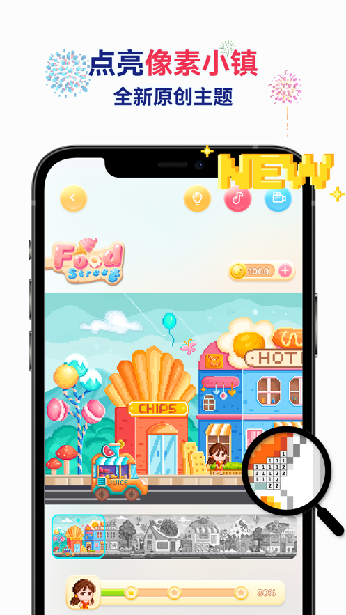 1、这会是一款非常能够消磨时间的游戏,数百幅不同的像素黑白画等你去填色;