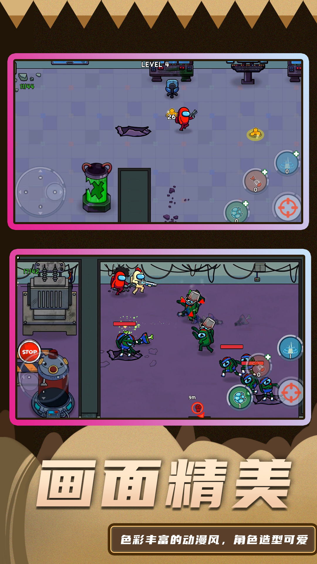 2、操控卡通英雄,开始精彩射击挑战的动作游戏,疯狂的射击模式。