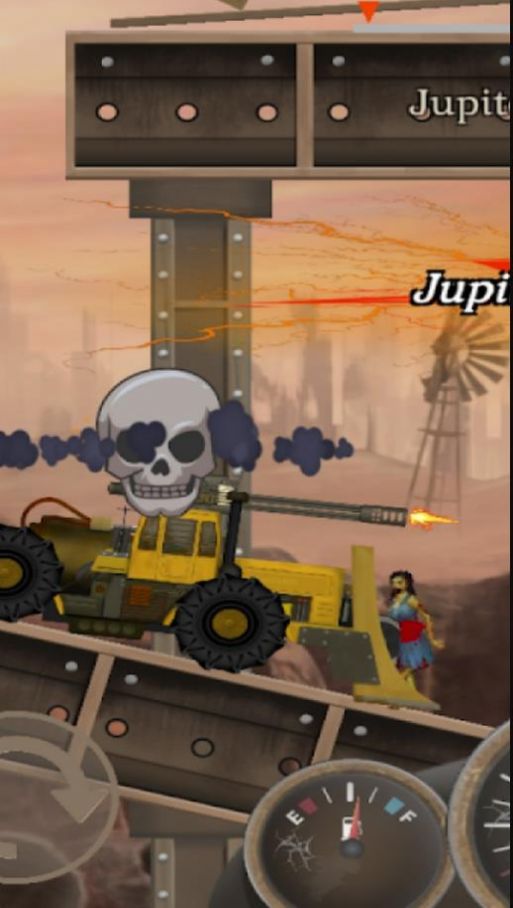 1、为自己的战车加上各类武器配件,提升其战斗力,一边射击一边驾驶竞速;