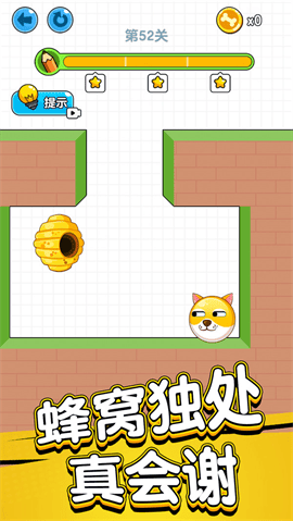画线救救狗头肿么了游戏是一款益智解谜小游戏。最近在抖音上十分火热,我们的任务是要画线拯救狗头不被蜜蜂蛰,没一个关卡都拥有不止一个闯关方式,针对同一个关卡我们可以多多思考出更多不同的方式来保护狗头,充满了益智趣味的玩法,在这里释放自己的脑洞用更佳的方式拯救狗头吧!