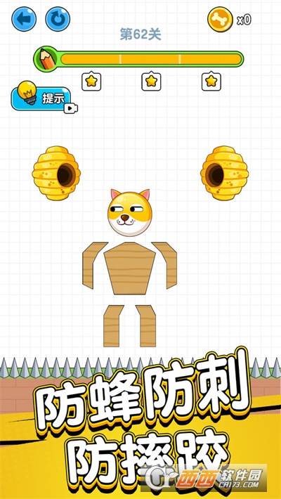 1、画线救救狗头肿么了还是经典的狗头玩法,保护狗头防止被蜜蜂蛰到;