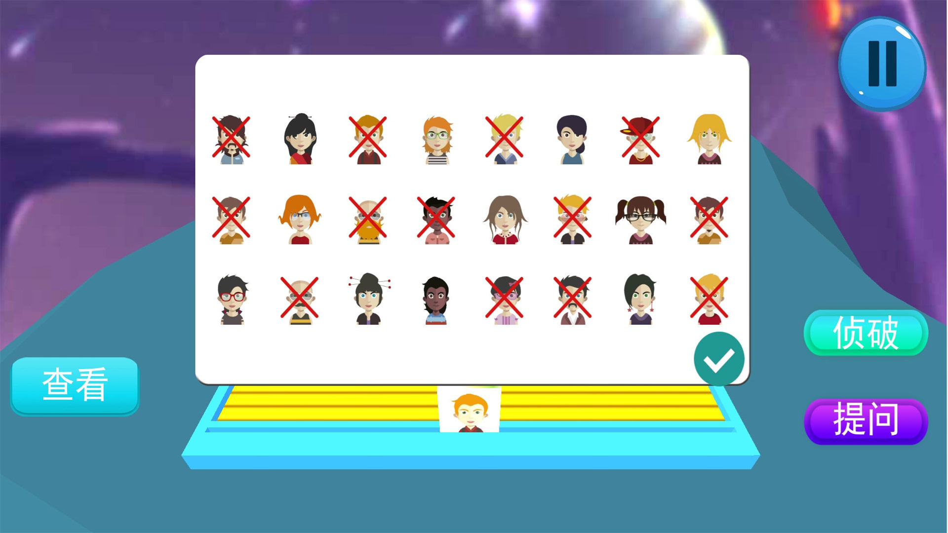 3、通过的提问的方式进行,不断的逼近真相,回答正确就可以过关。