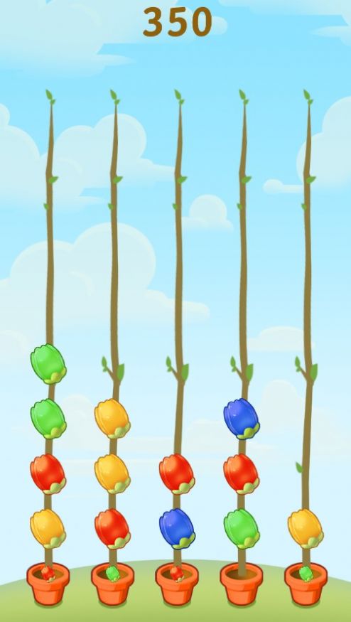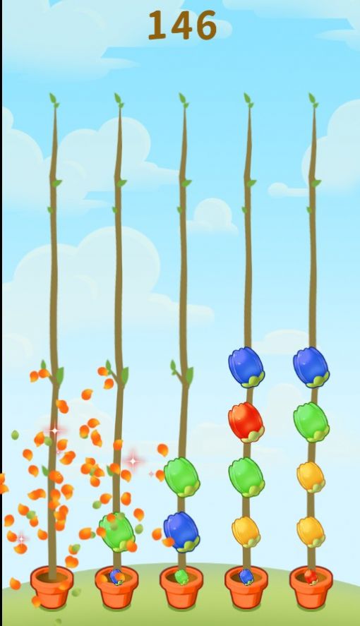 2、沉浸其中,不断挑战不同的任务,相同颜色花朵,轻松合并;