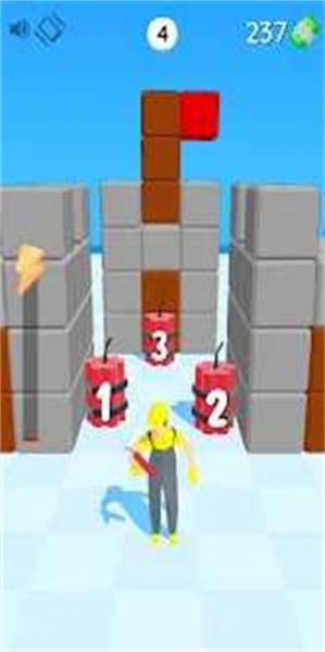 不断的更新自己的思维方式来解锁更多的关卡来挑战,其他关卡的炸药数量会有变化,不同的关卡使用的炸药量也不一样,要收集一些炸药哦,不然后面难度也大的炸不掉。