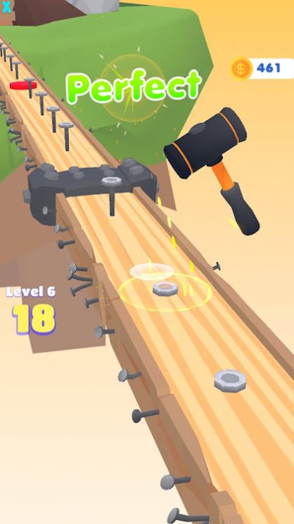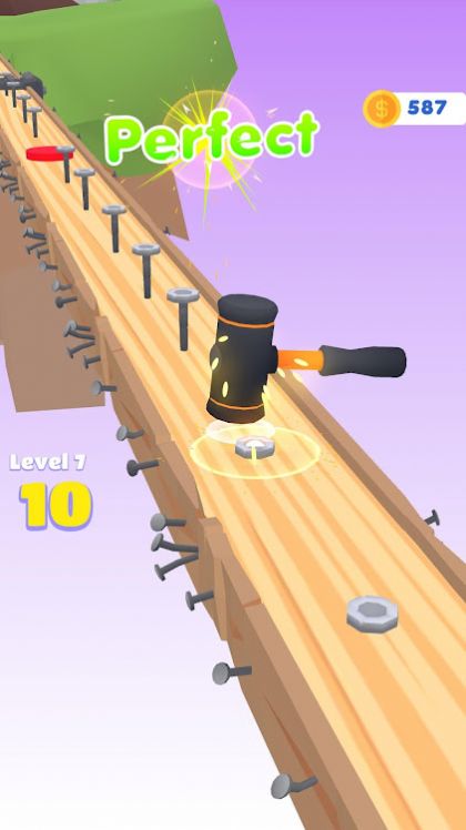 钉钉子跑游戏是一款魔性减压的闯关小游戏。拿起锤子去钉钉子前进,整个过程十分具有节奏趣味性,我们需要跟随音乐的步伐去有规律的钉钉子,十分减压的玩法,十分富有挑战的闯关体验,每一次的钉钉子时机把握得好的话,我们可以获得更好的评价,根据评价的不同获得的分数也会不同,趣味十足等你来挑战!