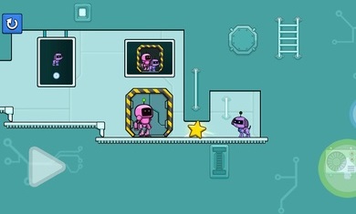 2、同时控制两个英雄并激活按钮来打开大门、移动平台、推箱子和收集星星到达空间站的出口;
