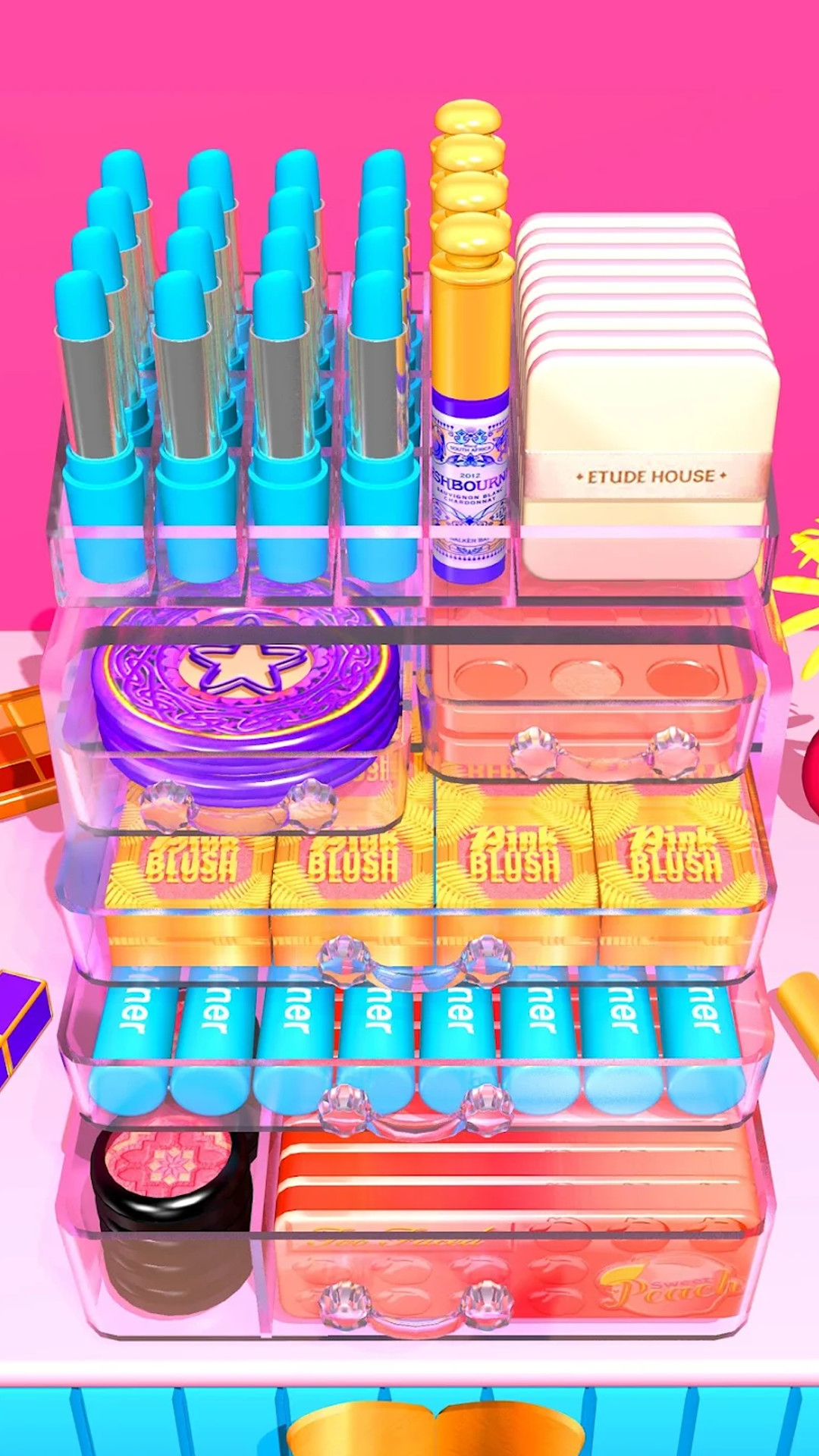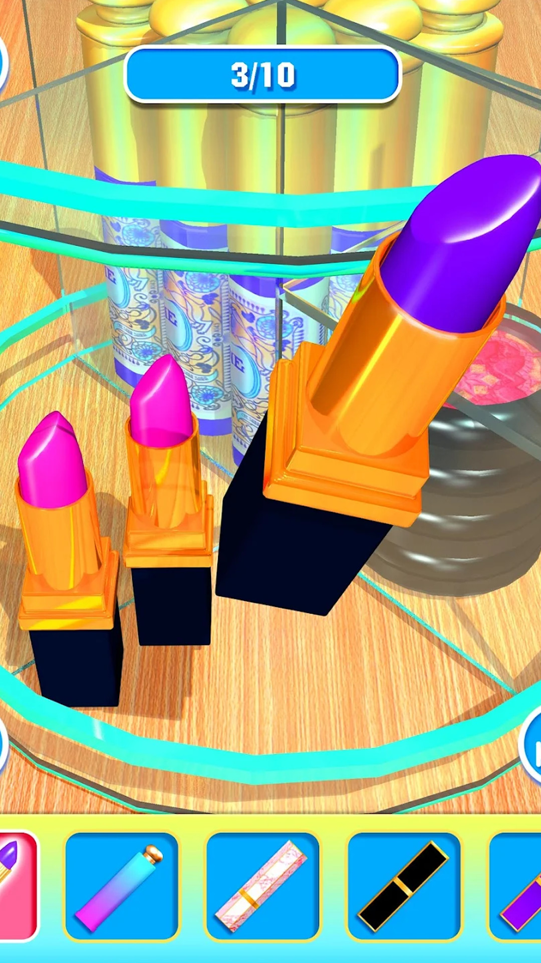 收纳整理大师游戏是一款玩起来非常轻松的趣味手游,杂乱无章的化妆台需要你去整理一番,将眼影笔、睫毛膏、精华水等物品放到合适位置,保证整个化妆台的干净整洁,只要你按规定完成指定任务,之后便可得到自己心仪许久的奖励啦!