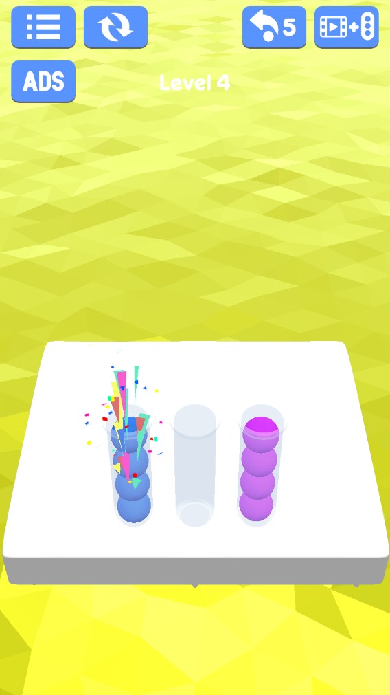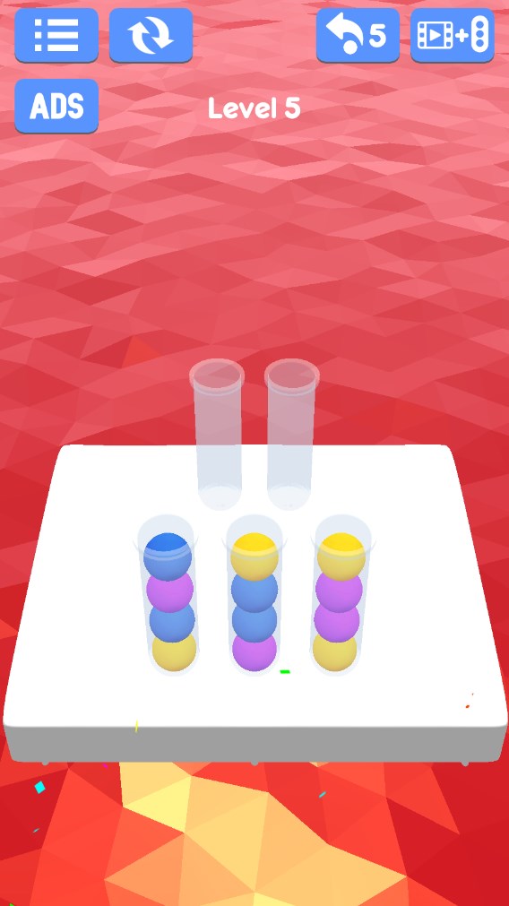 球排序3D颜色排序游戏是一款逻辑分类游戏。我们需要将混合子啊瓶子中的彩色球进行分类,刚开始的关卡是比较简单的,彩色球的种类少,比较好分类,但是到中期关卡难度逐步提升,拥有更多数量的球,并且各种颜色的球混合在一起想要闯关并不是那么简单,快来这里挑战闯关,锻炼你的逻辑思维吧!