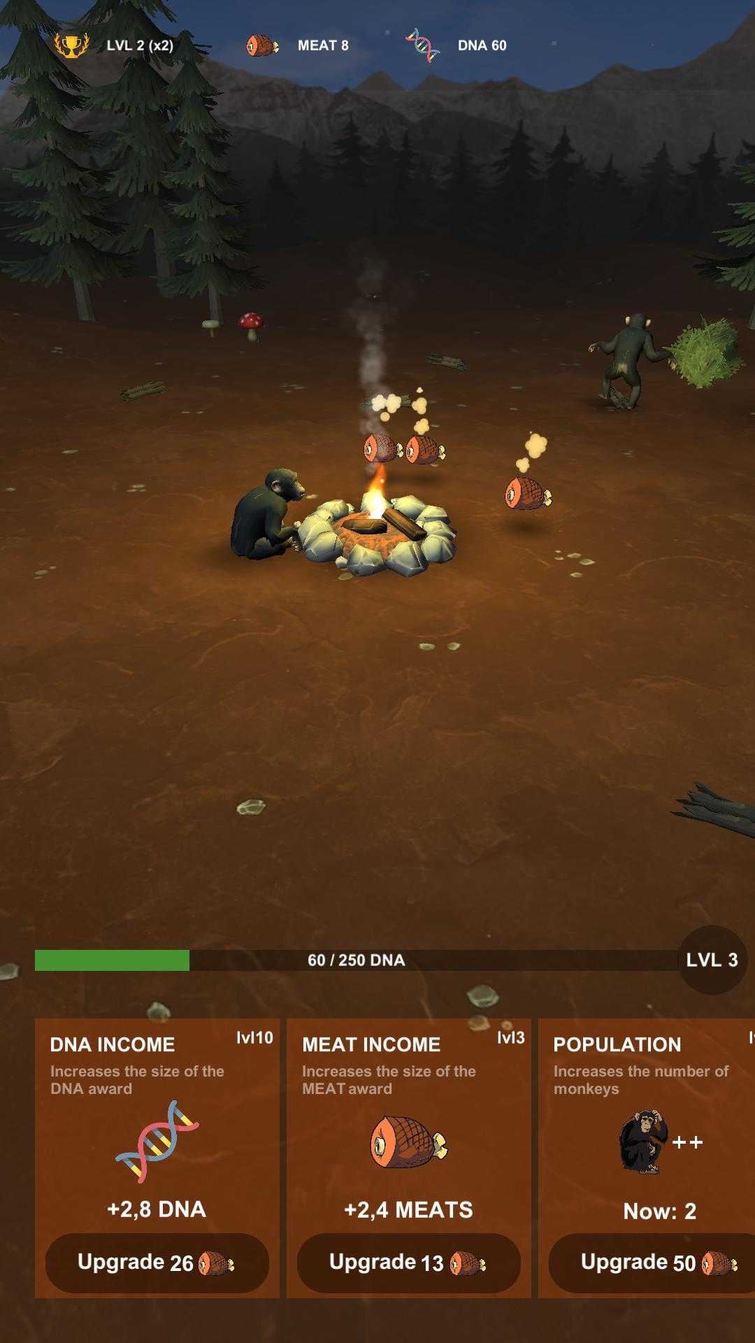 空闲火进化是一款冒险生存类游戏,你将在野外完成求生挑战,使用火堆来烹饪各种食物,保证自己拥有充足的体力来进行冒险,还能选择升级火堆获得更多效果,去获取各种资源,面对各种突发事件能找到最好的方法来解决问题,一定要保护好自己的火堆,不能出现任何意外,还有很多冒险任务等你完成。