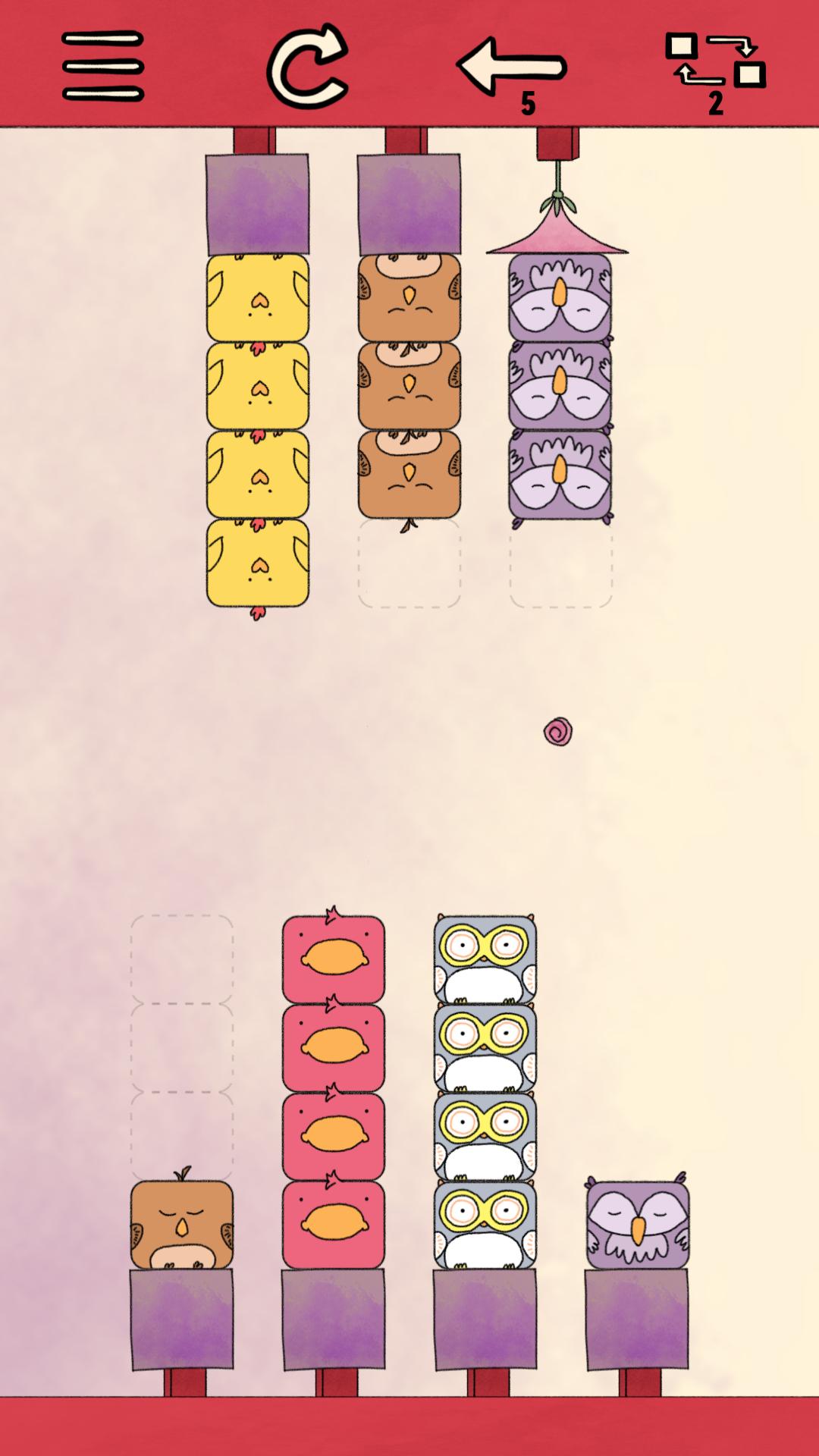 1、玩家通过点击来移动不同颜色的小鸟,当所有相同颜色的小鸟被分到同一组中即可过关;2、游戏内共有40个关卡,每个关卡包含2-5个谜题!而且每一个谜题的质量很高;