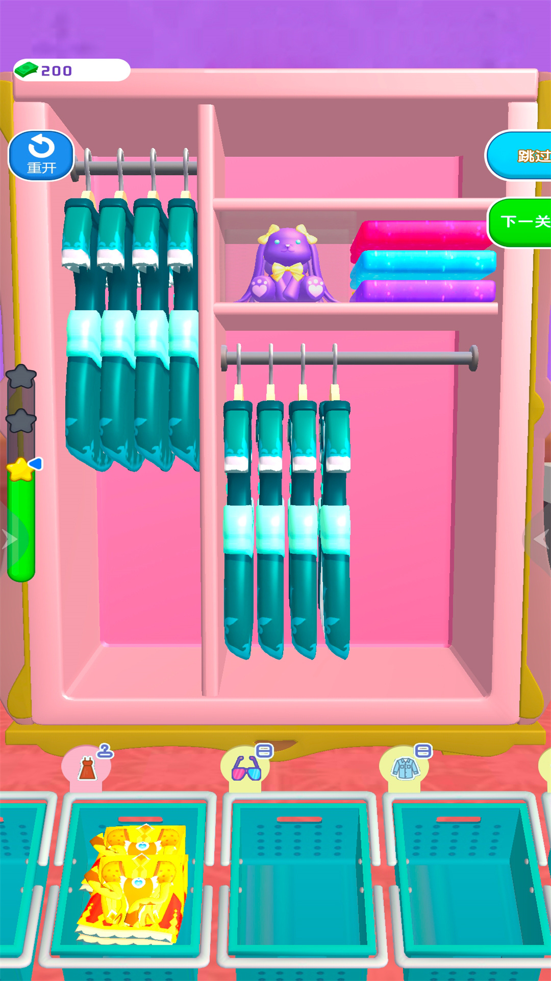 这是一款考验手速,反应力以及合理运用空间能力的游戏,在这款游戏中你需要在规定的时间内整理好你的衣柜,
