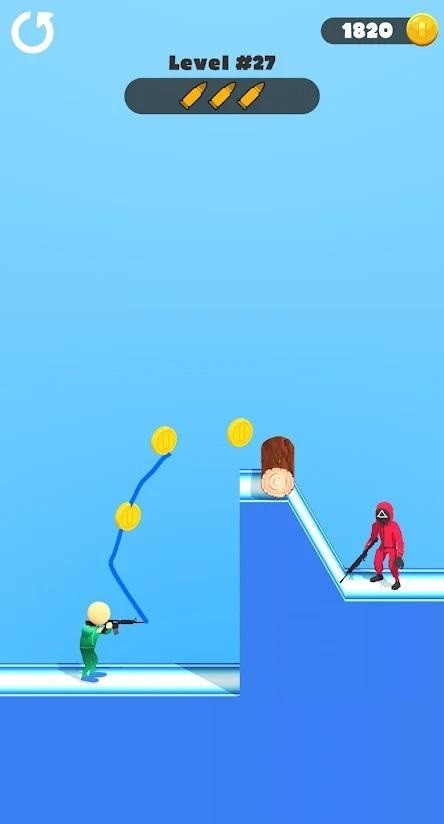 Draw the Bullet是一款玩法有趣的射击闯关小游戏。在游戏中玩家需要通过关卡就需要射击敌人,但是游戏的设定却是弹道需要玩家用手绘制出来,这就非常有趣了,我们在射击之前需要仔细研究好路线保证不浪费每一发子弹才能通关。