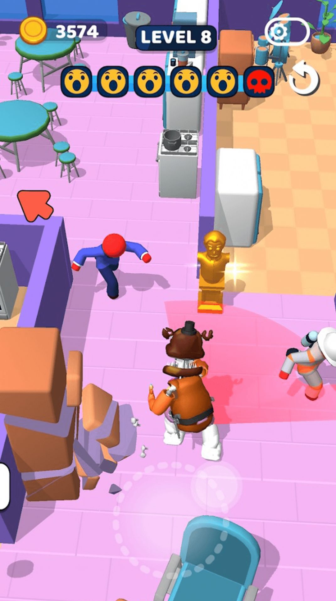 2、战斗对决,动作比拼,赢取通关金币奖励,不断升级角色;