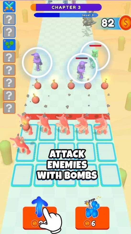 2.超多特色的关卡内容,你需要不断的合并更加强大的士兵;