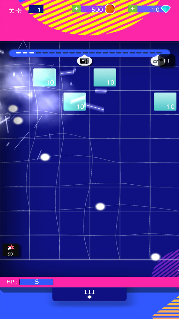 3、自由的挑战其中,灵活的移动运用物理弹射,消除更多的砖块,获取更多的积分。