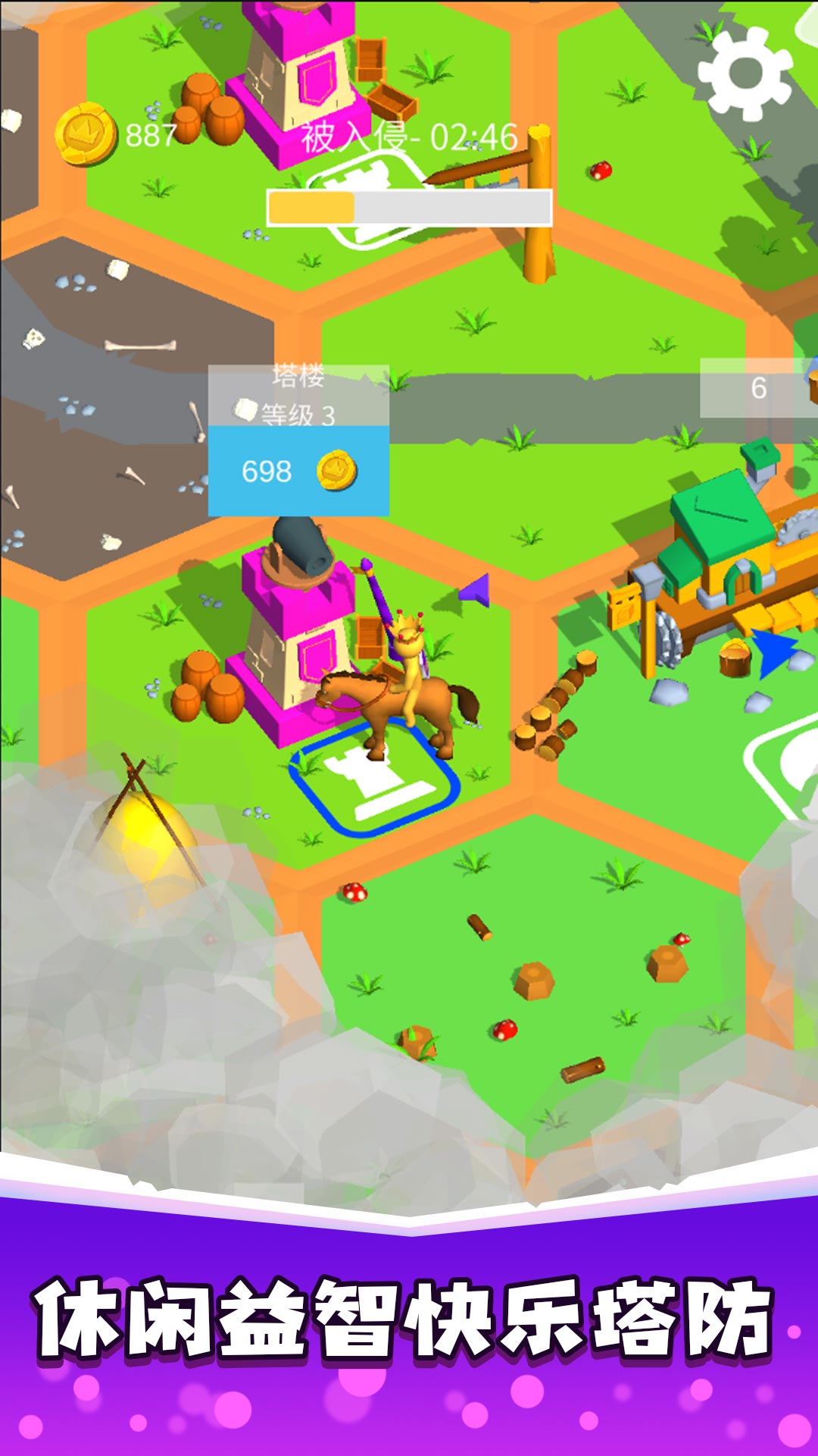 这是一款休闲塔防类游戏,游戏中玩家可以不断的开阔土地建造资源,升级城堡及炮楼来抵御入侵的怪物,