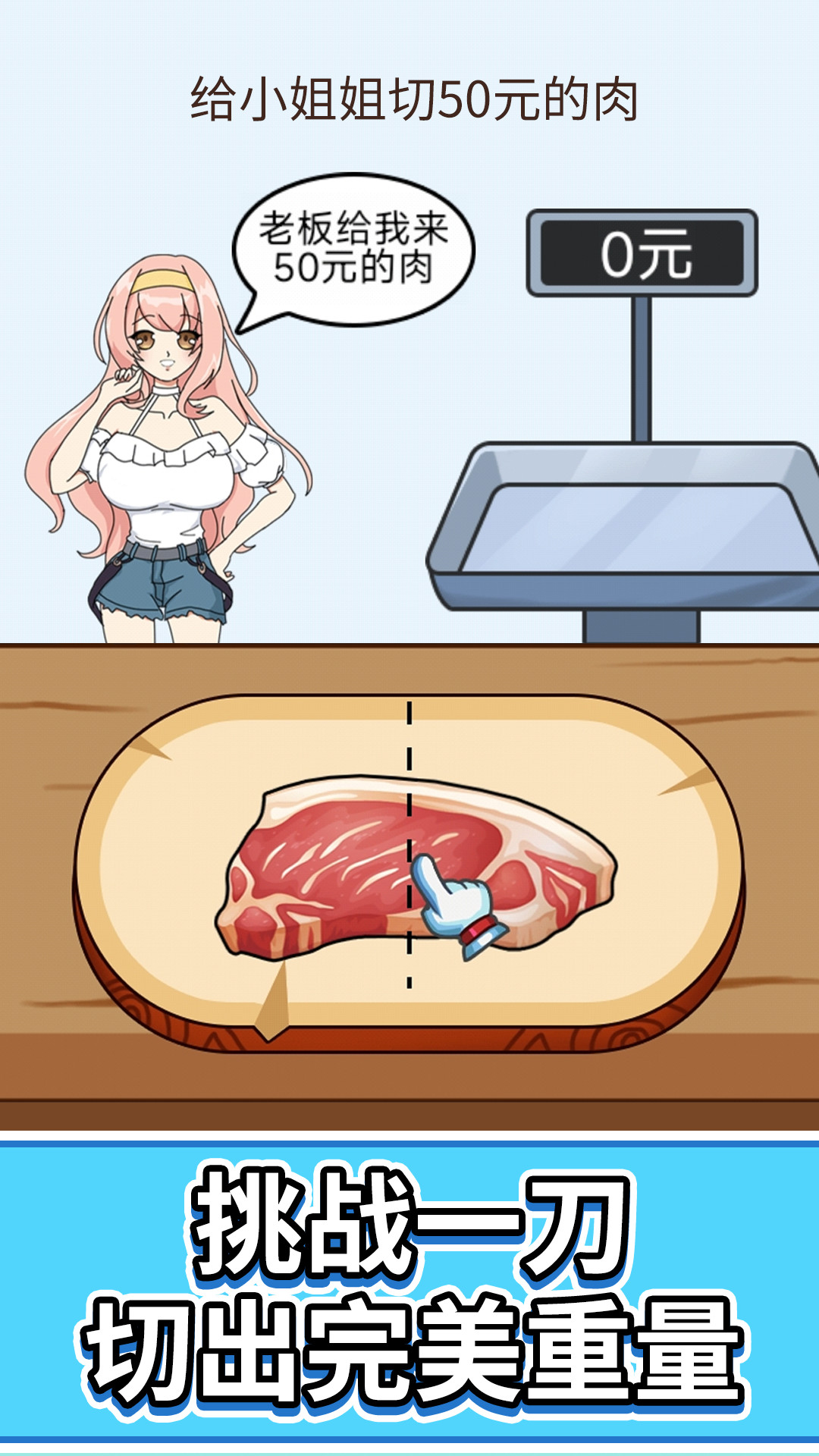 切包菜!切排骨!切切切!快给顾客切够足称的菜吧!这是一款开店经营解压模拟器。