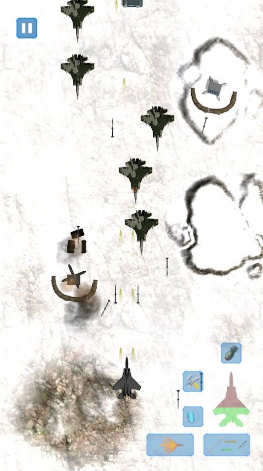 1、攻击密密麻麻,我们一定要灵活移动调整飞机的飞行位置,不然很容易就被敌军给摧毁。