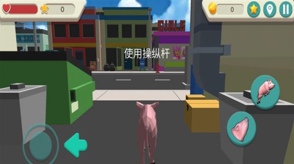 开启这个小猪的疯狂战斗模式吧,你只要掌控好这个操纵杆就可以了,在这个充满危险的城市中疯狂的逃窜,不断的解锁更多的关卡挑战,解锁更多有难度的关卡。