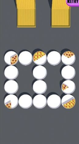 2、披萨碎片被放置在不同的位置,你需要将披萨进行合并,获得完整的披萨。
