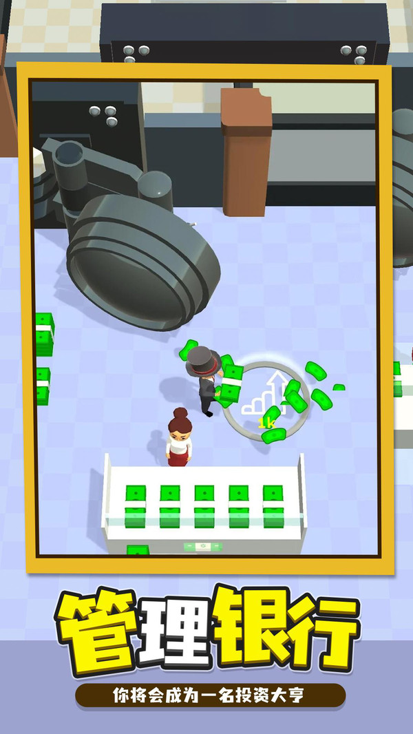 1、这是一款内容充实的银行模拟经营类游戏,玩家将在游戏中管理一家银行并让它蓬勃发展,