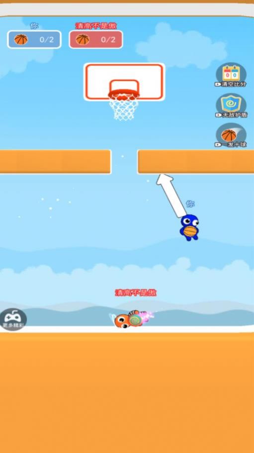 1、卡通橡皮人角色,灵活操控,投篮竞技,命中得高分;