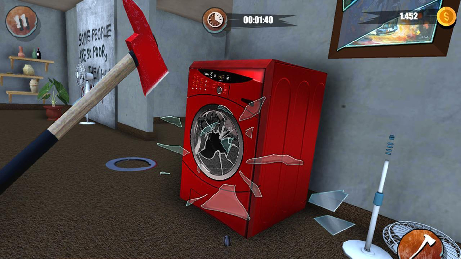 2、你可以使用手边随手可得的武器,锤子、棒球棒、枪、手榴弹等,快来一起搞破坏。