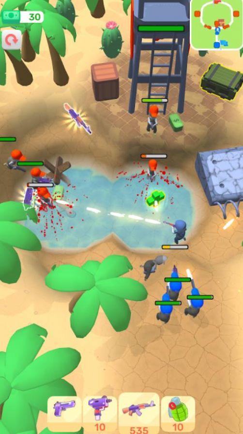 1、在这个卡通世界里可以体验欢乐无比的乱斗,实时的切换武器获得最终胜利。