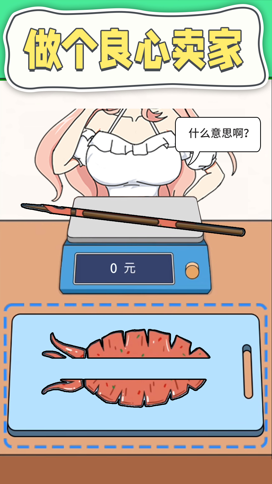 切包菜!切排骨!切切切!快给顾客切够足称的菜吧!这是一款开店经营解压模拟器。在这个游戏里你要做的就是满足顾客的需求,每个顾客要的种类和重量都不一样。做个良心商家,千万别切一些边角料给顾客哟~