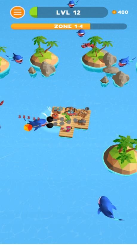 3、建造和升级木筏,对抗野生动物,体验刺激的玩法,努力生存。