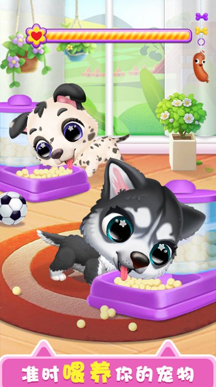 小猫小狗活动的场所是一间温馨可爱的大房间,在这里和可爱的小猫小狗亲密互动起来吧~照顾小猫小狗吃饭、喝水、睡觉,带它们玩耍还有上厕所,它们要是脏了还要帮它们洗澡。