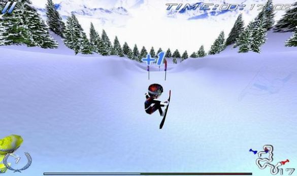 2、游戏里玩家要灵活控制人物前进,各种滑雪技巧也可以尝试助你获胜。