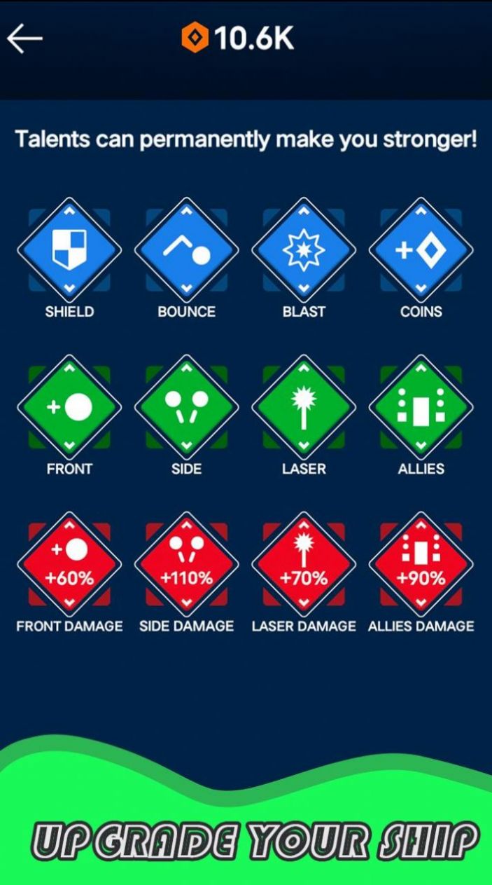 3、全新设计操作里的雷霆战机疯狂的击打砖块,从而解锁更多厉害的武器来赢得游戏的胜利。