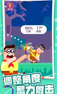 1、通过滑动屏幕来控制力度、角度和角色的攻击方向;