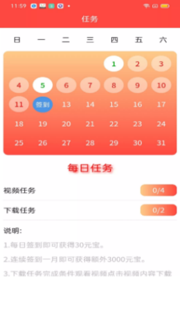 ·每日签到,领取元宝,用户可以通过软件来进行每日签到获取更多的元宝,多种任务都可以简单完成,轻松快捷的购物。