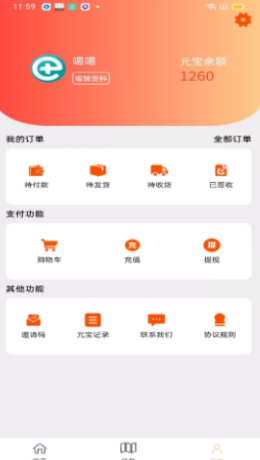 3.用户可以使用软件设计完善的推广模式,通过对于商品购物之后对于自己的亲朋好友分享自己的邀请码来让亲友使用软件购物,能够让用户获取更多的元宝,购物更优惠。