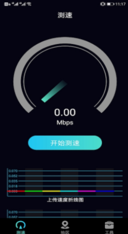 2.通过完善的网络测速模式可以更加轻松的来查看网络的变化过程,软件下方设计了一个完善的图标曲线图,所有的网络速度都会根据时间节点来进行网速的收集,网速变化一目了然。