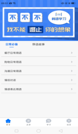 ·日常用语,韩语故事,软件收录了各种非常常用的日常语以及韩语故事,让用户可以使用这些内容来强化发音表达内容。