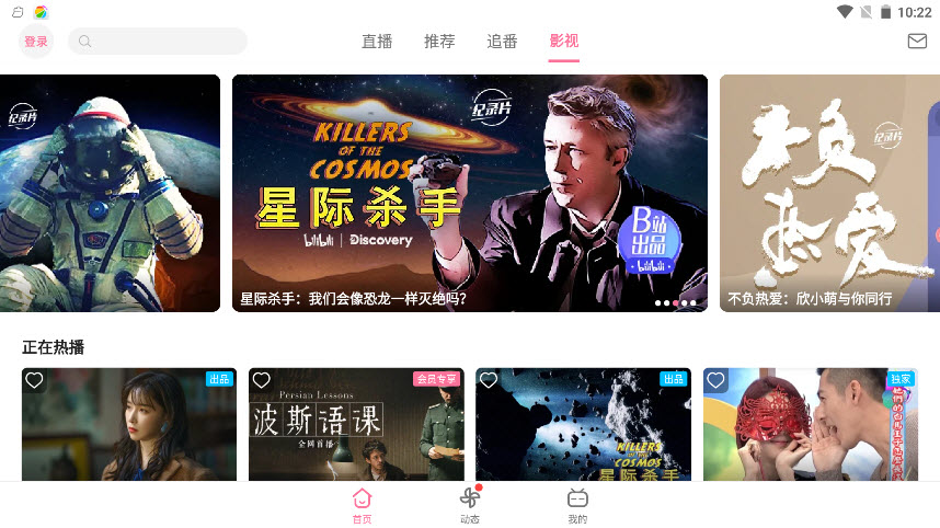 哔哩哔哩HD app丰富且具有内涵的视频成千上万,用户可以利用弹幕的形式来相互的交流,里面拥有很多的模块,动漫、番剧、影视以及直播都有,视频资源相当的丰富,在本站下载,即可让你享受横板大屏观看,带你体验不一样的B站玩法,你可以关注自己喜欢的博主,每天拥有更新内容的话,可第一时间推荐。