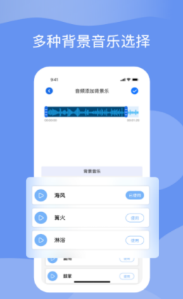 3.用户在使用软件时能够通过软件来添加各种软件使用以及视频制作时候的背景音乐,无论是海风还是篝火等等,能够让用户对于音频的编辑过程更加有趣,体会到轻松的编辑过程。