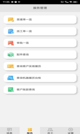 3.软件后台有着完善的数据管理模式,用户可以在软件中通过数据管理模式来查看各种不同的服务内容,从受理单到派工单以及配件和客户数据以及收款全部进行完整整合,方便查看。