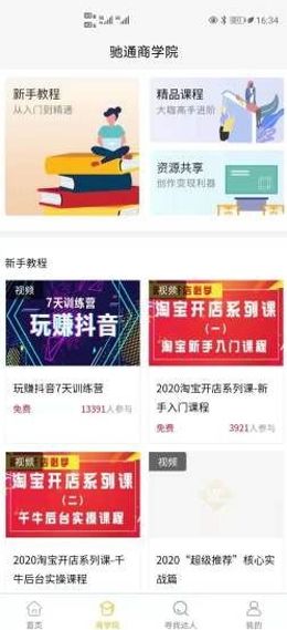 1.软件中开发了非常完善的电商商学院模式,用户可以在电商商学院中学习到超多关于电商运营的知识点,包括不同的课程以及资源共享模式,来推动用户的店铺发展进步。