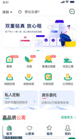 3,高品质公寓:通过层层筛选和系统定级,推荐出性价比和居住性较高的房源进行核心区域展示,保证用户能快速查看到符合房源。