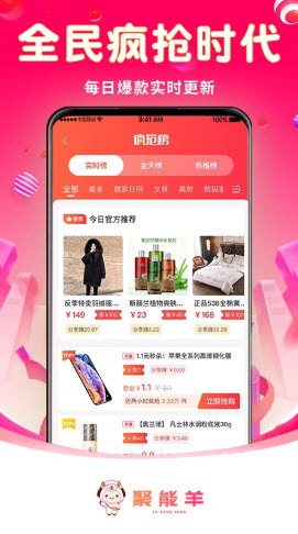 聚能羊app是款以省钱为目的的购物平台,复制里面的商品标题并且搜索,用户是能够领取到超多的免费优惠券的,而且赚钱的方式有很多种,通过推广放到方式就能够让你专区生活费的,吃喝玩乐,衣穿住行,均可通过这个入口让你进入省钱模式,各种爆款尖在线上都是有机会让你以零元购的方式来获得。